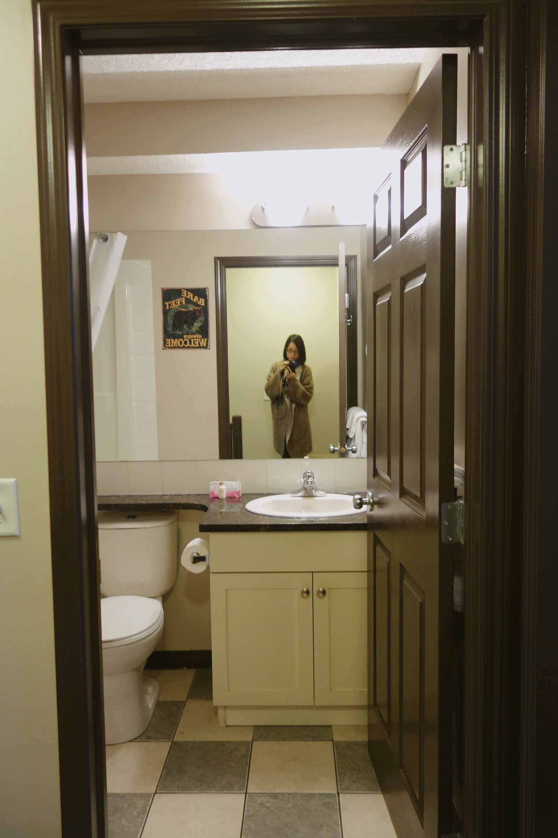 這一次婆婆與我們同行遊玩加拿大,住宿方面,大多是選擇雙臥室,讓婆婆有自己的獨立空間,經過千挑萬選神秘斯布林小屋酒店 Mystic Springs Chalets & Hot Pools出線,是我們此行加拿大之旅,最愛的住宿。它也不算是酒店,確切來說,是小木屋,每個都是獨棟,有兩層樓,一樓有客廳、廚房、餐桌、工具間還有一個後門通往後面的公用溫水泳池,二樓有兩間房間,一間帶衛浴,另一間房不帶衛浴,使用走廊邊的浴室。