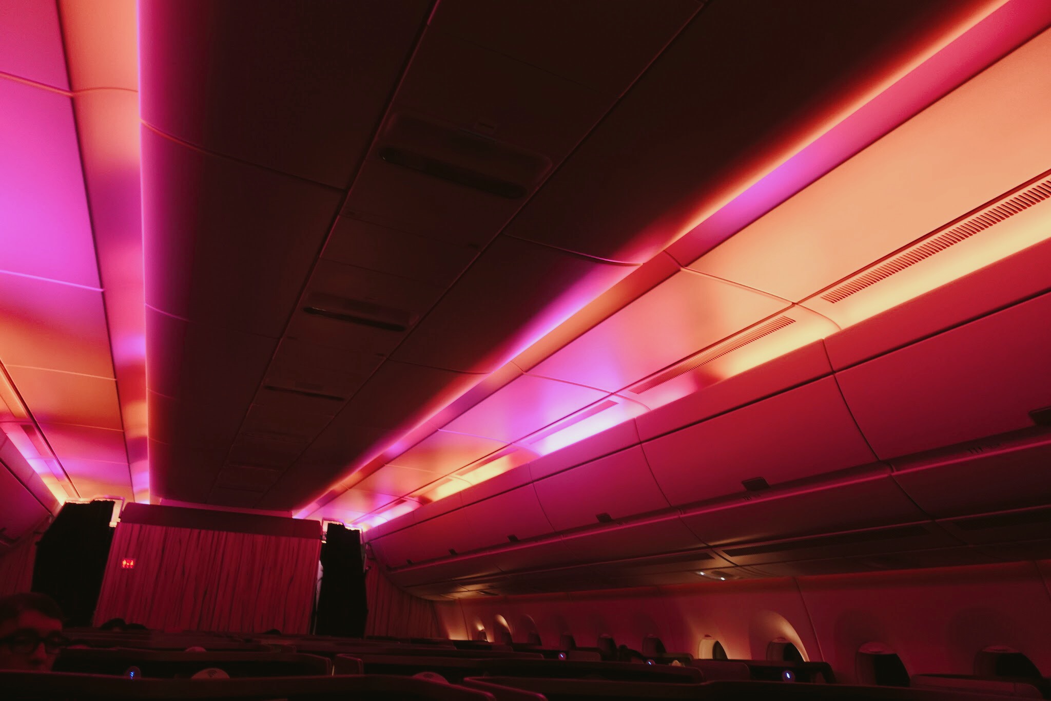 應該沒人像我這麼愛觀(無)察(聊),發現燈光有藍、紫、白、黃、粉紅、橘色流動,其實滿漂亮的,據說燈光設計是為了讓旅客在這些不同燈光的幫助下能入眠,達到休息的目的,真的,不知不覺就睡著了。